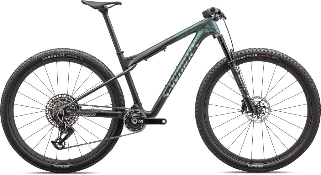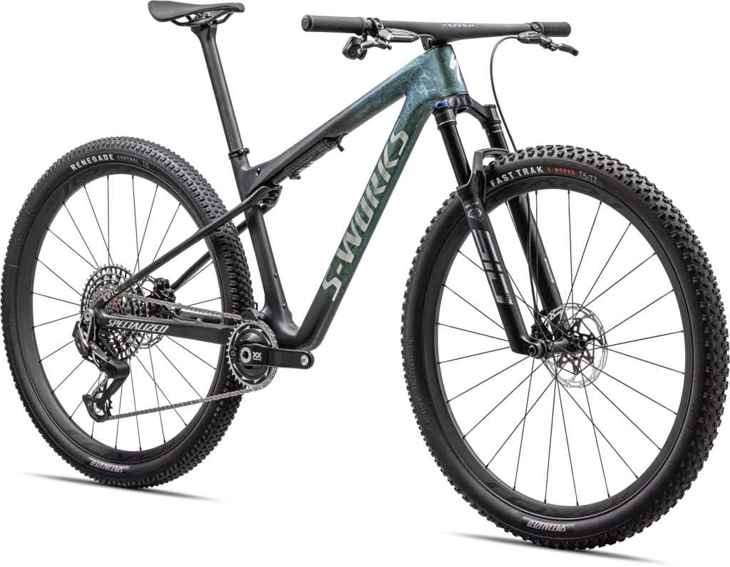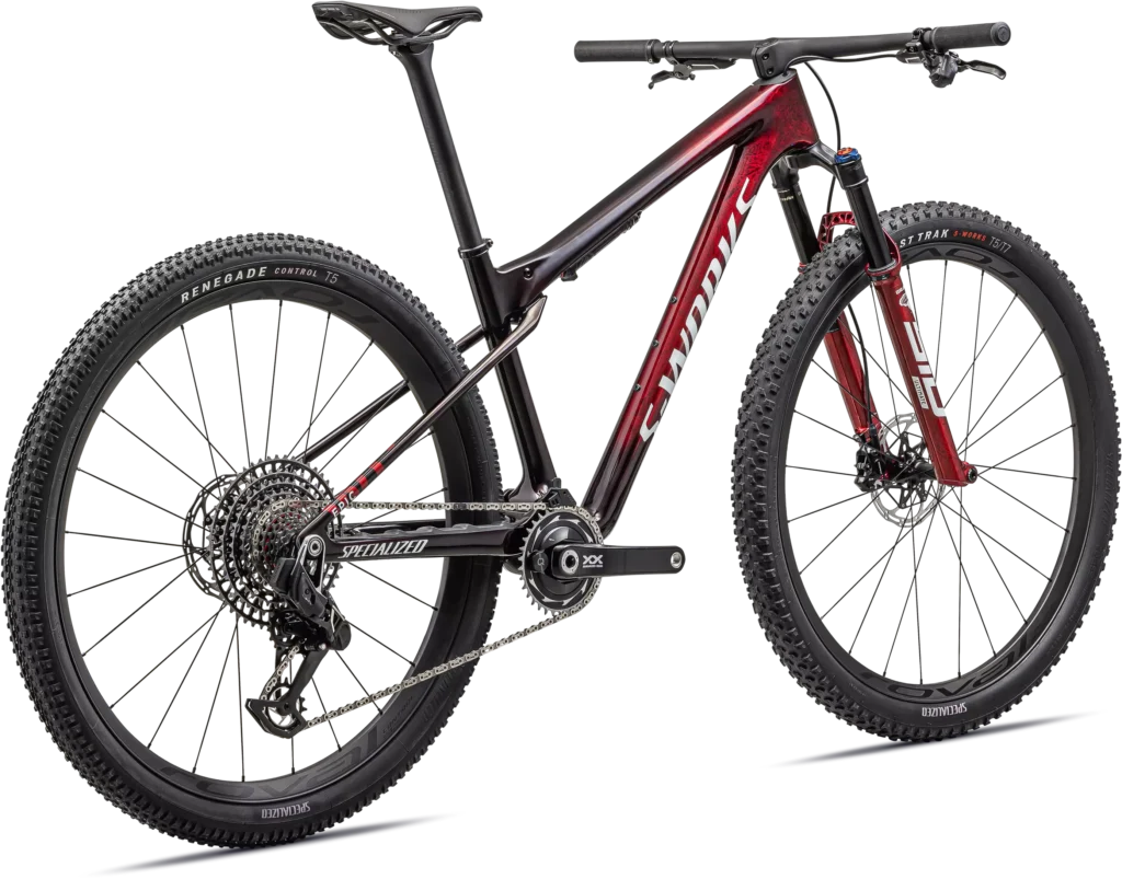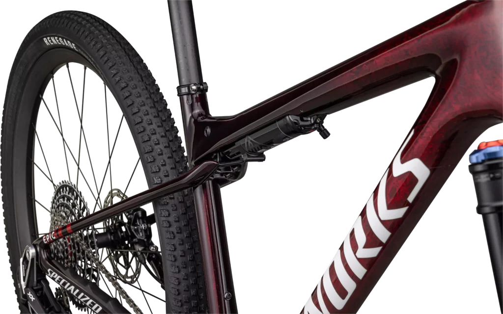 Schneller als gedacht: Das S-Works Epic World Cup ist dank seiner unübertroffenen Kombination aus Effizienz, Kontrolle und geringem Gewicht auf leichten bis mittelschweren Strecken das schnellste Cross Country-Racebike der Welt. Weltmeister Christopher Blevins hat es am besten ausgedrückt: „Dieses Bike bietet mir alles, was ich an Hardtails liebe, plus die Kontrolle und die Möglichkeiten eines Fullys.“ Alles, was es brauchte, um diese Speed-Maschine zu bauen, war ein absolut ganzheitlicher Entwicklungsansatz, die Erfindung eines radikal neuen Dämpfers und vier Jahrzehnte Erfahrung im Offroad-Bereich gekrönt mit unzähligen Siegen. NEUE RAHMENSTANDARDS: Um maximale Geschwindigkeit durch gnadenlos effiziente Kraftübertragung und präzises Handling zu erreichen, hat unser Ingenieursteam neue Maßstäbe in Sachen Verwindungs- und Tretlagersteifigkeit gesetzt und erreicht. Dieses Kunststück erforderte einen ganzheitlichen Entwicklungsansatz, der ein strukturell überlegenes Doppel-Diamant-Layout mit einem im Oberrohr integrierten Dämpfer vereinte und das anspruchsvollste Carbonlayup in der Geschichte von Specialized beinhaltete. SCHOCKIEREND SCHNELL: Das Specialized Ride Dynamics Team hat für das Epic World Cup eine revolutionäre Dämpfertechnologie entwickelt, die dir die Effizienz und das bissige Ansprechverhalten eines Hardtails plus die Kontrolle und Leistungsfähigkeit eines vollgefederten Bikes bietet – und all das mit einem einfachen Setup. Der gemeinsam mit RockShox entwickelte SID Deluxe WCID Dämpfer nutzt eine einzigartige Luftfeder mit unabhängig voneinander einstellbaren Positiv- und Negativ-Luftkammern. Dieses Setup sorgt für den begehrten Snap eines Hardtails und schluckt schwieriges Gelände; erhält deinen Schwung und verzeiht Fahrfehler. Das Setup kann an unterschiedliche Strecken angepasst oder auf deine Vorlieben abgestimmt werden. Wenn du das Epic WC hart einstellst, fährt es sich wie ein Hardtail, im weicheren Setup räumt es die Brocken aus dem Weg. Dabei hast du nicht nur die Option, die Druckstufe zu öffnen oder zu schließen; die einfache Natur des Setups erlaubt dir auch, mit oder ohne Sag zu fahren. EXTREM SCHLAGFERTIG FÜR SEINE KATEGORIE: Die Hinterradfederung des Epic World Cup bietet mit 75 mm die gleiche Kontrolle und Fähigkeiten wie ein Bike mit viel mehr Federweg. Sie ist so konzipiert, dass sie überwiegend in oder nah an der Topped-out-Position gefahren wird. Das ergibt den gleichen positiven Federweg wie bei einem Bike mit 100 mm Federweg und 25% Sag. Zur weiteren Optimierung der Federung hat das Specialized Ride Dynamics Team die Federrate so abgestimmt, dass sie in der Mitte des Hubs relativ flach ist und die meisten Stoßkräfte wie ein Bike mit längerem Federweg bewältigen kann. Die Größe des Mega Jounce Bumper, des speziellen Anschlagdämpfers; ist ein Novum und spielt eine entscheidende Rolle bei der sanften Bewältigung von Bottom-Outs bei starken Stößen. WIR HABEN UNSEREN VERSTAND VERLOREN: Der neue und bahnbrechende SID Deluxe WCID Dämpfer sorgt für die einzigartige Mischung aus Support und Nachgiebigkeit im Heck – und das ohne BRAIN Technologie. Dagegen ist das BRAIN in der Federgabel weiterhin verbaut und noch immer quicklebendig. Die Position-Sensitive Technologie mit 15 mm Sag beschert dir ein ausgewogenes Fahrverhalten und bietet eine geschmeidige Nachgiebigkeit bei kleinen Unebenheiten und darüber hinaus eine starre Pedalierplattform, ohne Lenkerfernbedienung für die Druckstufe. LEICHTER UND STEIFER: Mit einem Rahmengewicht von nur 1.765 Gramm (lackiert mit Dämpfer und Hardware) lässt das Epic World Cup die leichteste Konkurrenz hinter sich. Das bedeutet schnellere Beschleunigungen, effizienteres Klettern und agileres Handling. Und all das macht sich schlussendlich in der Geschwindigkeit bemerkbar. Dieses Leichtgewicht und seine enorme Steifigkeit haben wir erreicht, indem wir unsere Erkenntnisse aus der Entwicklung des Aethos, des leichtesten jemals hergestellten Serienrennrads, inklusive fortschrittlichstem Carbonlayup und Rohrformen genutzt haben. DIE HÄRTESTE KONKURRENZ: Das S-Works Epic World Cup ist mit allen verfügbaren Roval Control SL Komponenten aus Carbon ausgestattet: Laufradsatz mit 1.240 g, Sattelstütze mit 180 g und Cockpit mit 250 g (70 mm × 780 mm). Diese Komponenten bieten ein unvergleichlich geringes Gewicht, Steifigkeit und Kontrolle für die heutigen World Cup-Parcours.