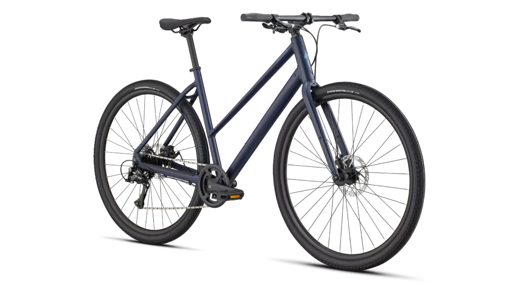 Specialized A1 Premium Aluminum, Fitness Geometry, butted tubing, internal cable routing, flat-mount disc, quick-release, Plug + Play rack/fender mounts