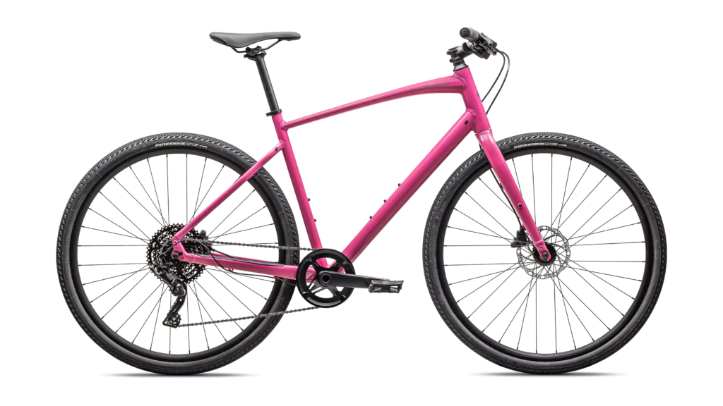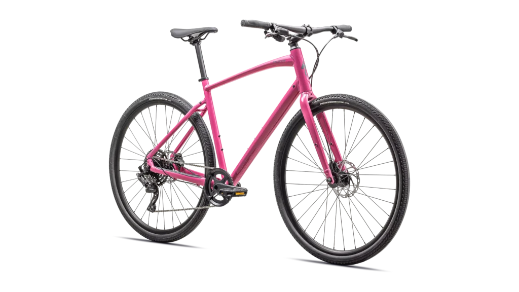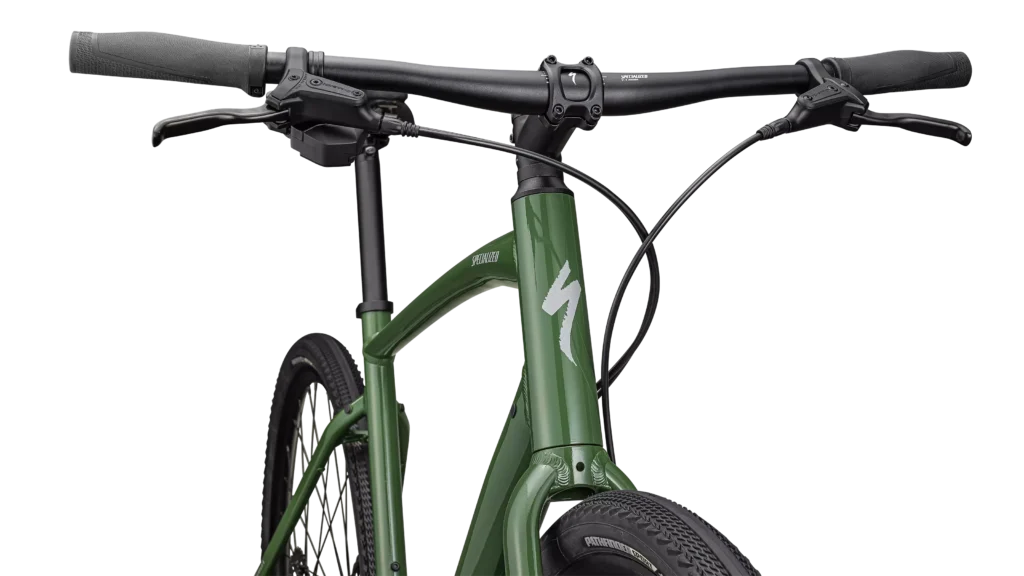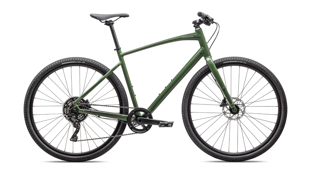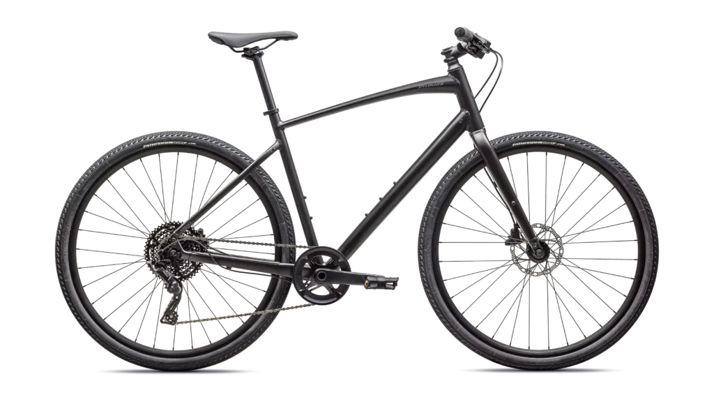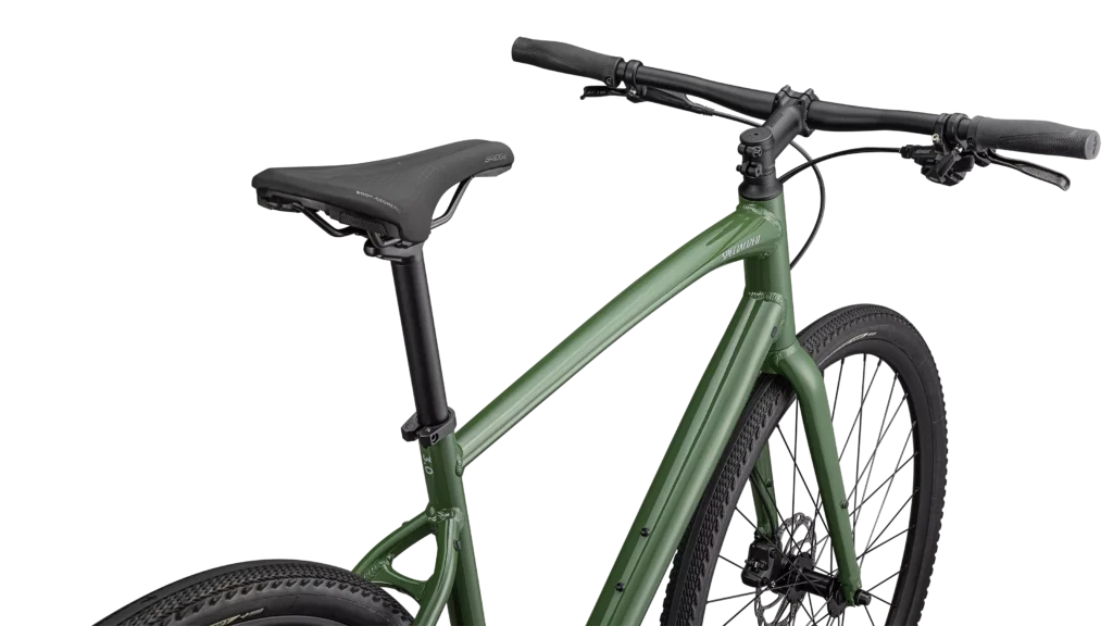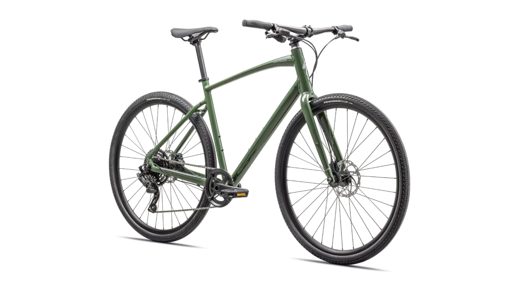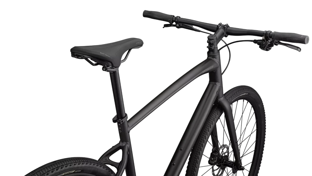 Specialized A1 Premium Aluminum, Fitness Geometry, butted tubing, internal cable routing, flat-mount disc, quick-release, Plug + Play rack/fender mounts