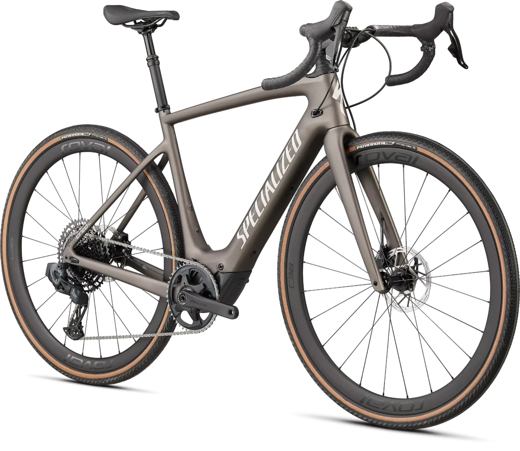 Was macht das Graveln so reizvoll? Ist es die Auszeit von der hektischen Stadt mit ihren verstopften Straßen? Ist es das hörbare Knirschen der Kieselsteine unter deinen Reifen? Oder ist es einfach das Gefühl von Abenteuer? Was auch immer es ist, das Turbo Creo SL Expert EVO ist hier, um dich auf deinen Rides immer tiefer in den Wald, abwärts auf Schotterpisten oder auf deinem nächsten Abenteuer zu begleiten. Es verfügt über den gleichen Rahmen, Motor und Akku wie sein Verwandter auf der Straße; ist aber mit breiteren Reifen und abenteuertauglichen Komponenten ausgestattet, um dich dahin zu bringen, wohin dein Herz sich sehnt. – It’s you, only faster. Das Turbo Creo SL Expert EVO baut auf einem Fact 11r Carbonrahmen auf und ja, das ist der gleiche Rahmen wie beim S-Works Modell. Dazu erhältst du die neue Future Shock 2.0. Die Schalt- und Bremsaufgaben übernimmt eine SRAM Rival eTap AXS mit einer 11–50Z-Kassette; während ein Roval C 38 Disc Carbon Laufradsatz eingepackt in Pathfinder Pro 2Bliss Ready Reifen mit 38 mm dich sorglos und superschnell rollen lässt; egal in welchem Terrain. Abgerundet wird die Ausstattung durch unseren Adventure Gear Lenker mit 12° Flare, einem Future Stem Pro, einer X-Fusion Manic Dropper Post mit 50 mm Hub und dem bei unseren Fans beliebten Body Geometry Power Expert Sattel.