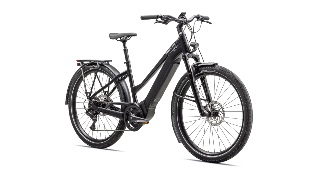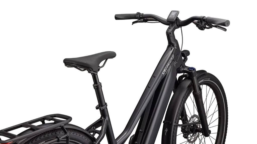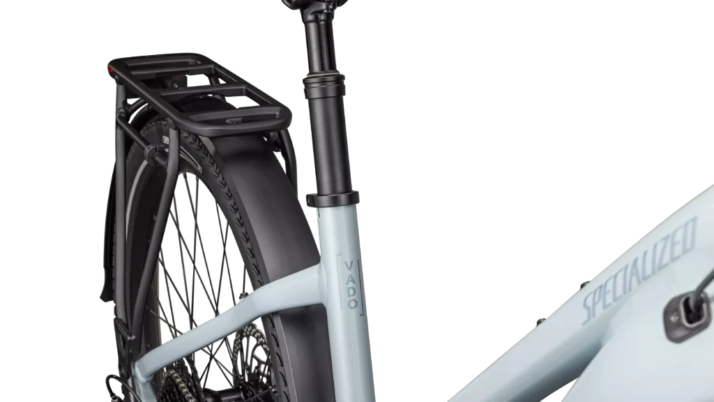 Consider Vado your high-performance transportation bike, getting you where you’re going with an unmatched combination of speed, reliability, and confidence. Whether you load it up with your stuff, or jump on and go, commute to work, or ride to the gym, Vado’s full power and huge range will get you from ‘point A’ to ‘point B’ ASAP. The Specialized Vado has everything you need for e-powered transport. It brings a balanced nature to the way it handles and superior levels of comfort. This is a true class leader of its type. TURBO: The heart of the Vado is its Turbo technology, an advanced and integrated electric bike system that delivers an unequaled combination of power, natural feel, anti-theft functions, training tips, and a full-function bike computer. POWERFUL: It’s you, just faster — it’s 4x You. The Turbo Full Power system senses the force you apply to the pedals and naturally quadruples it for an experience that makes getting up any hill or to any destination no sweat. Literally. COMFORTABLE AND CONFIDENT: Body position and handling are optimized to deliver unsurpassed riding comfort, confidence, and control. Powerful hydraulic disc brakes reign in your speed, while larger tires provide maximum traction for turning and stopping. SMOOTH: Stay comfortable in the saddle with an 80mm front suspension fork, higher volume tires, and a plush suspension seat post that smooths harsh bumps from points A to B. SECURE: Vado has anti-theft lock built right into the bike. Prevent would-be bike thieves by disabling the motor with a press of a button so no one can turn on the motor without your phone connected to the Specialized app or your personalized pin. The Vado’s battery locks in the bike or can be easily taken with you. And if anyone tries to move your bike an alarm will sound. Beat it, thieves. The speed limit at which the motor will stop supporting may vary significantly by region and is based on local requirements. It may also affect range: a higher speed limit may result in less range.